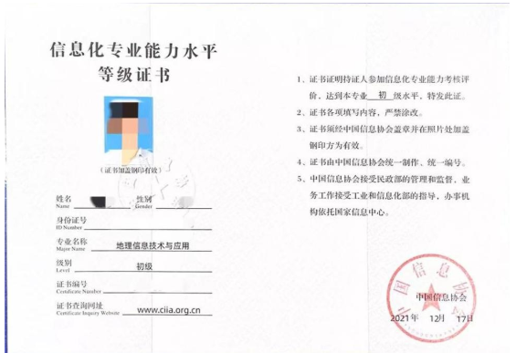 一、由中國信息協會頒發的《信息化專業能力水平等級證書(地理信息技術與應用專業)》申領截止日期為:6月30日,點擊鏈接填寫證書申領信息:https://jsj.top/f/iRcK2Z。